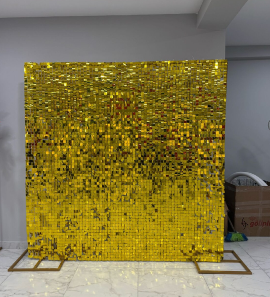 Ürünün Gold ve Gümüş Rengi mevcuttur. Ürünümüz 200x200cm’dir. Pul payet 30x30cm gelir ve 49 adet şeklinde paketlenir